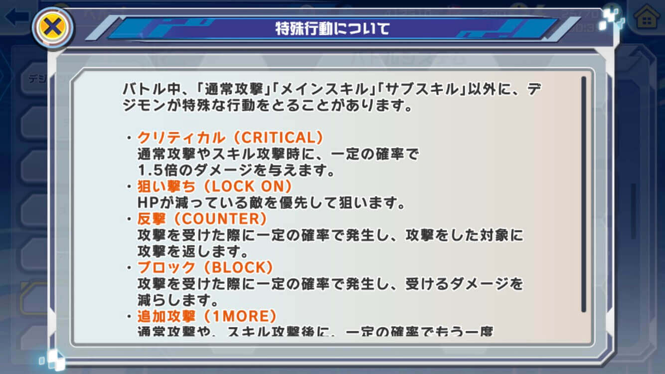 ブロック(BLOCK):攻撃を受けた際に一定の確率で発生し、受けるダメージを減らします。
