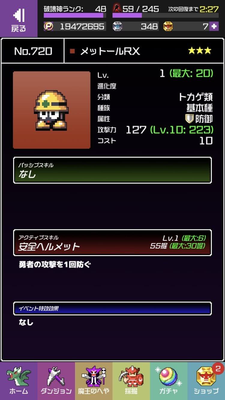 勇者のくせにこなまいきだ DASH!で8月31日より開始されたイベント「ロックマン襲来!目覚めよ悪のロボット軍団!」のイベント限定ガチャで獲得できる「メットール」の性能をご紹介します。